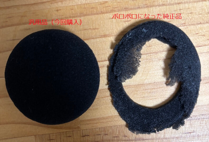 ぴったりいくサイズのイヤーパッドはなかったのですが、50mmのイヤーパッドで使用している方がいて実績があったことや多少は伸びるのでいけるだろうということで50mmのイヤーパッドの汎用品を購入しました。